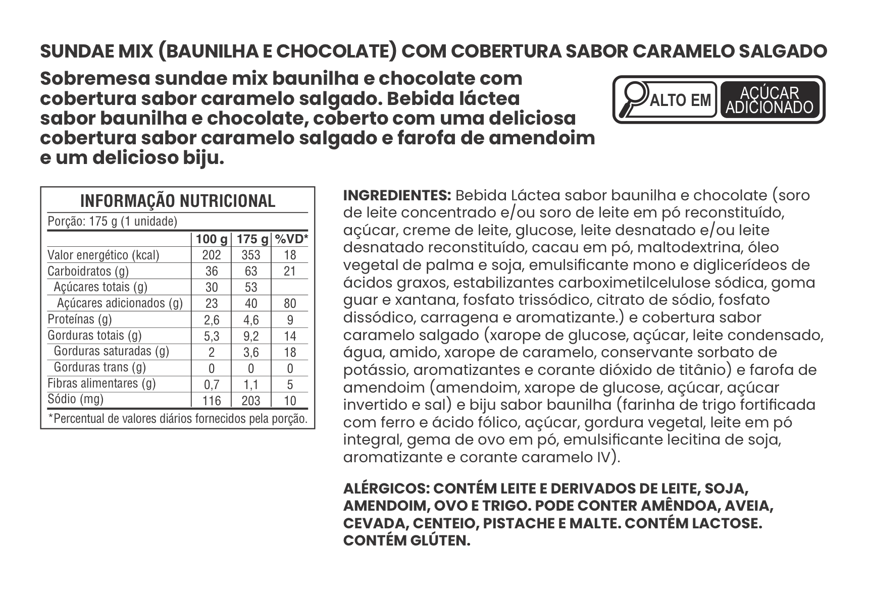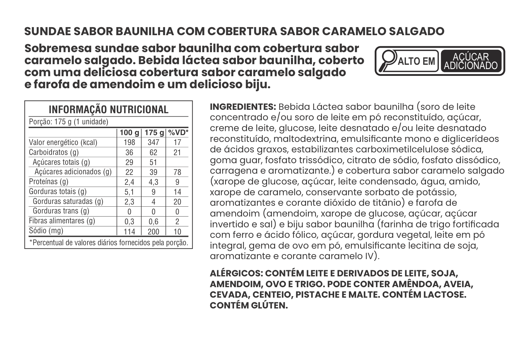 SUNDAE SABOR BAUNILHA COM COBERTURA SABOR CARAMELO SALGADO