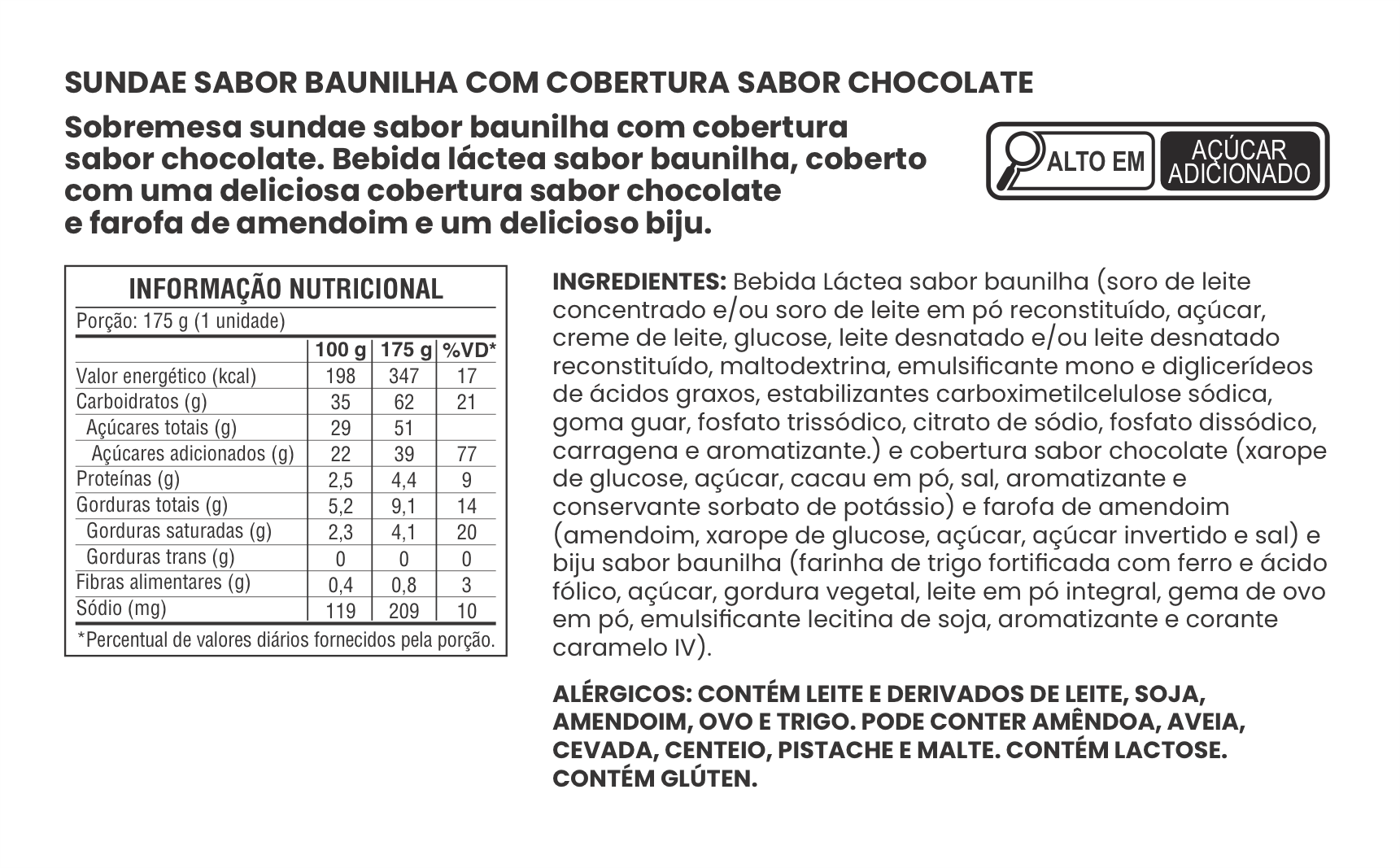 SUNDAE SABOR BAUNILHA COM COBERTURA SABOR CHOCOLATE