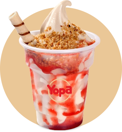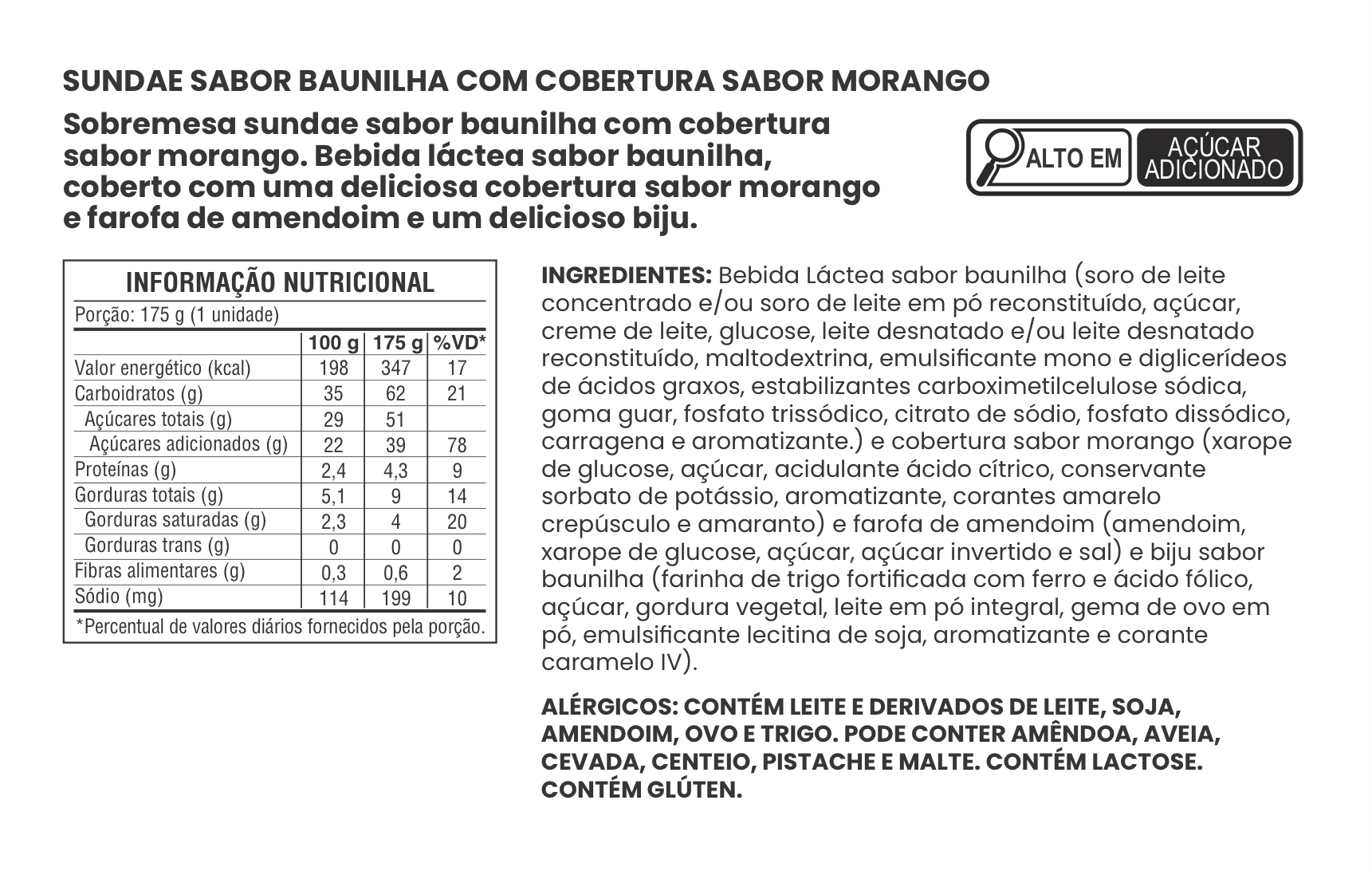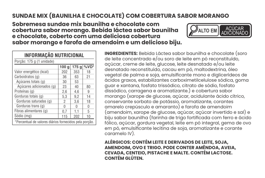 SUNDAE SABOR BAUNILHA COM COBERTURA SABOR MORANGO