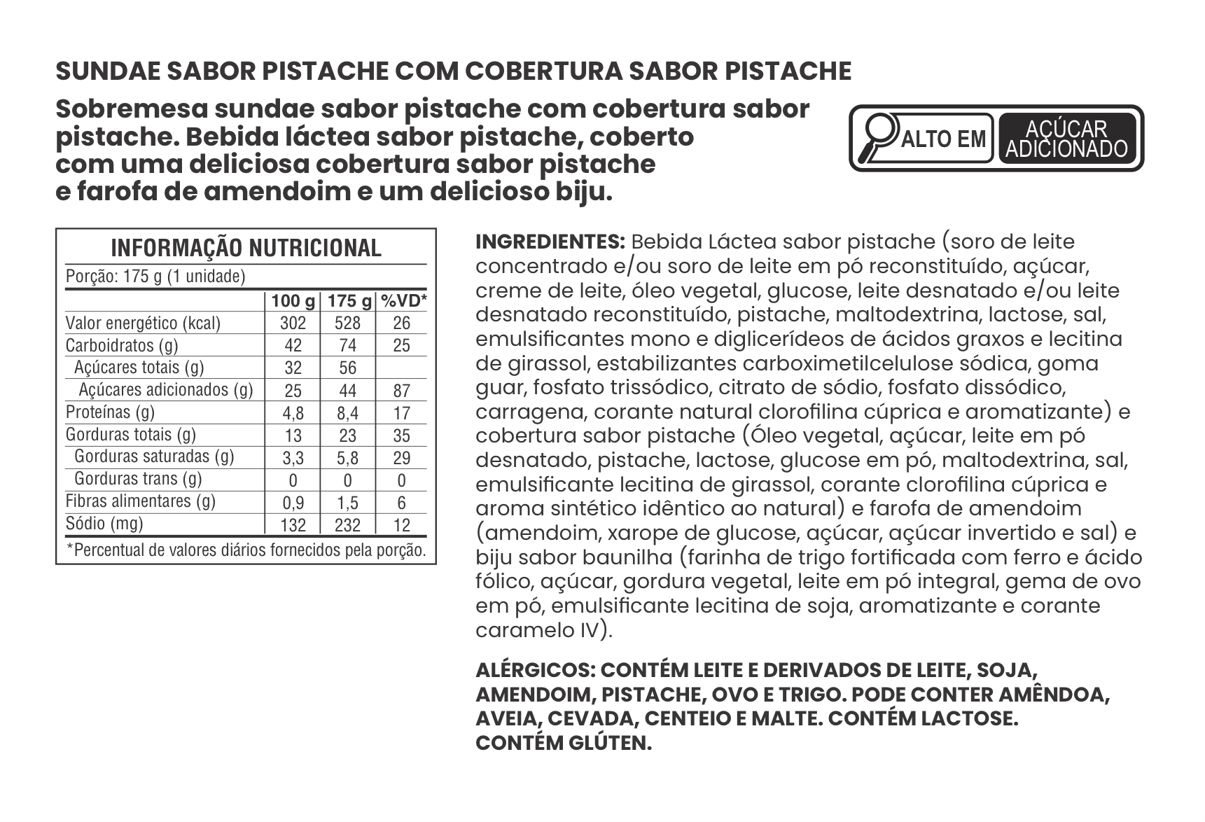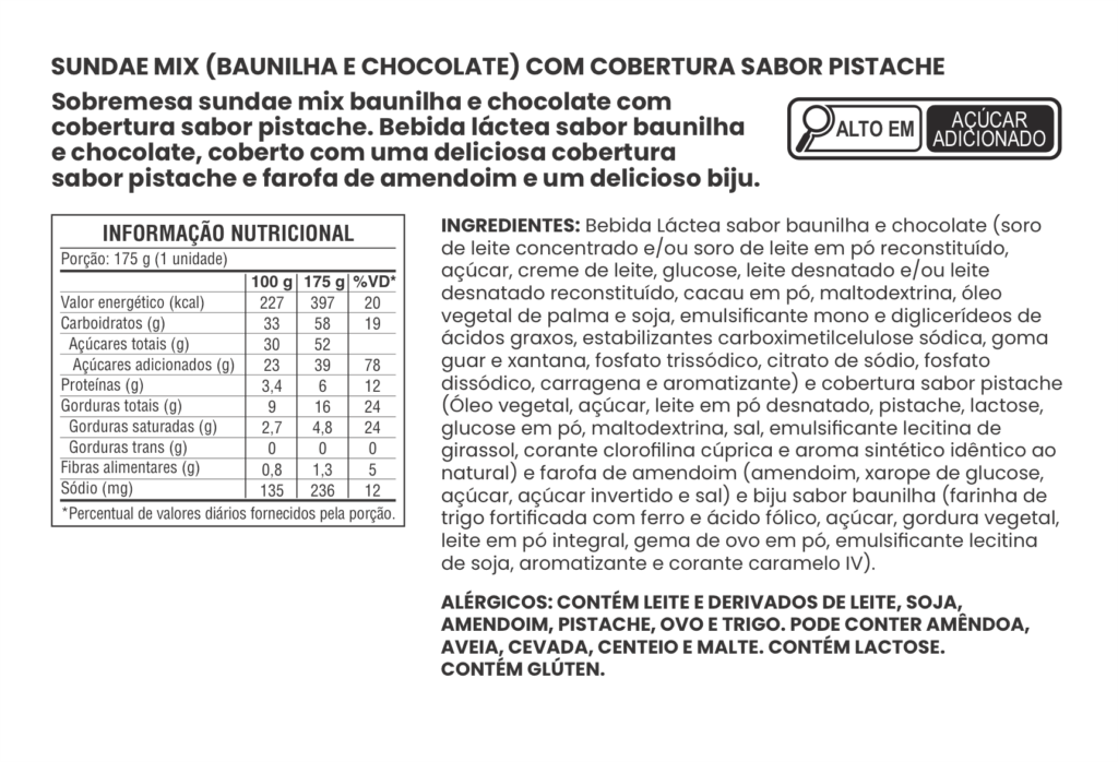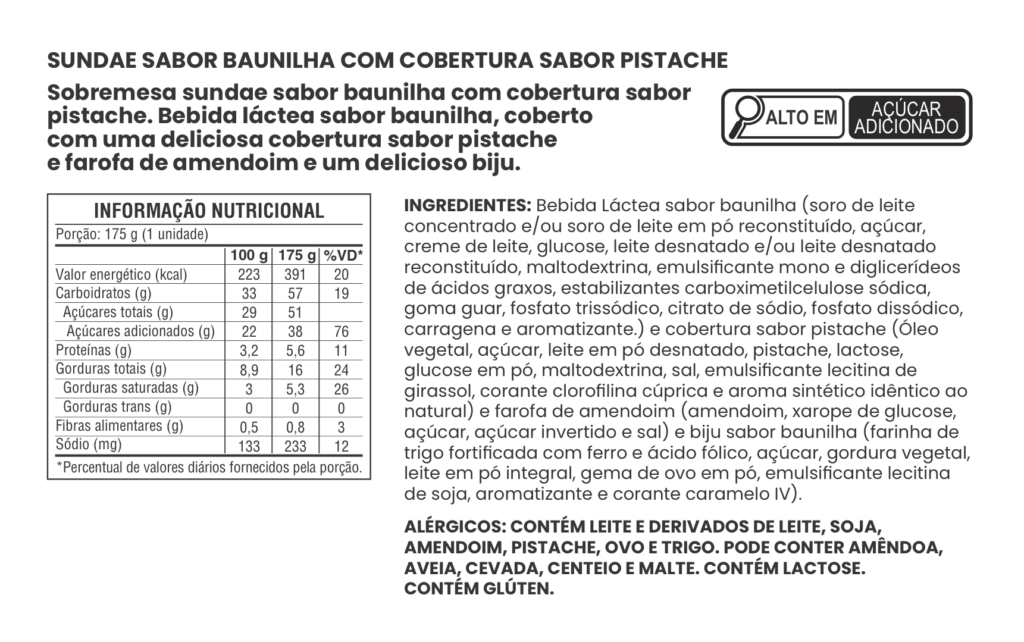 SUNDAE SABOR BAUNILHA COM COBERTURA SABOR PISTACHE