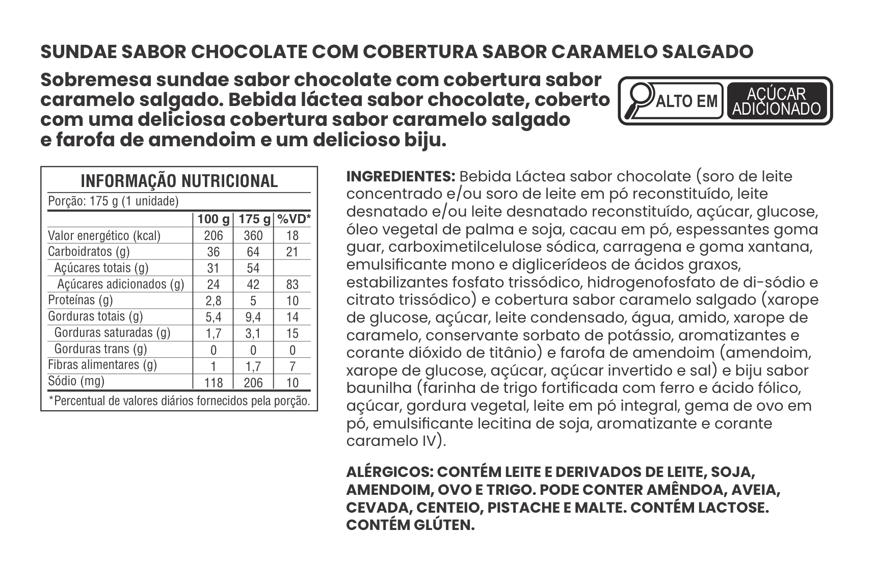 SUNDAE SABOR CHOCOLATE COM COBERTURA SABOR CARAMELO SALGADO