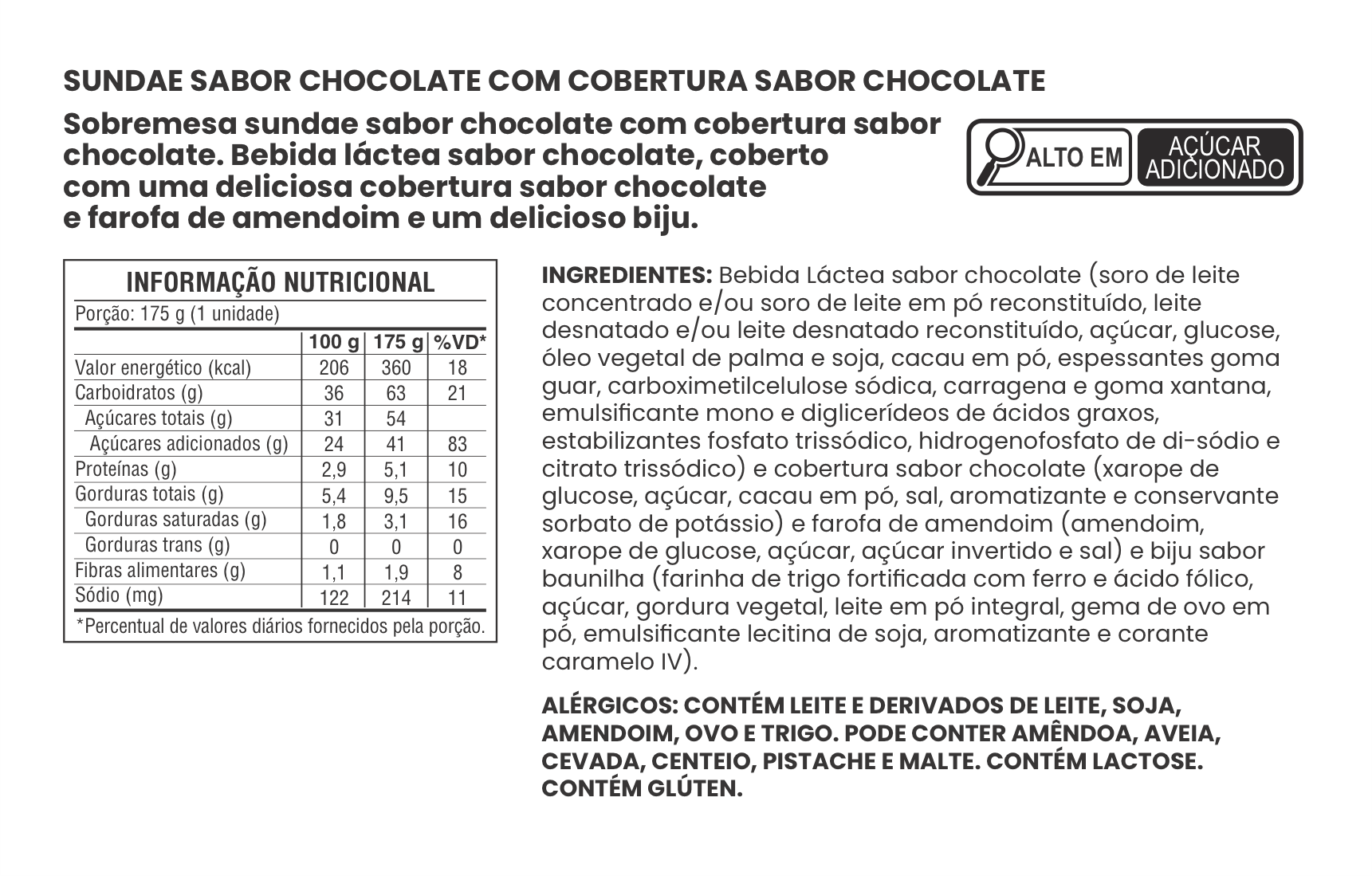 SUNDAE SABOR CHOCOLATE COM COBERTURA SABOR CHOCOLATE