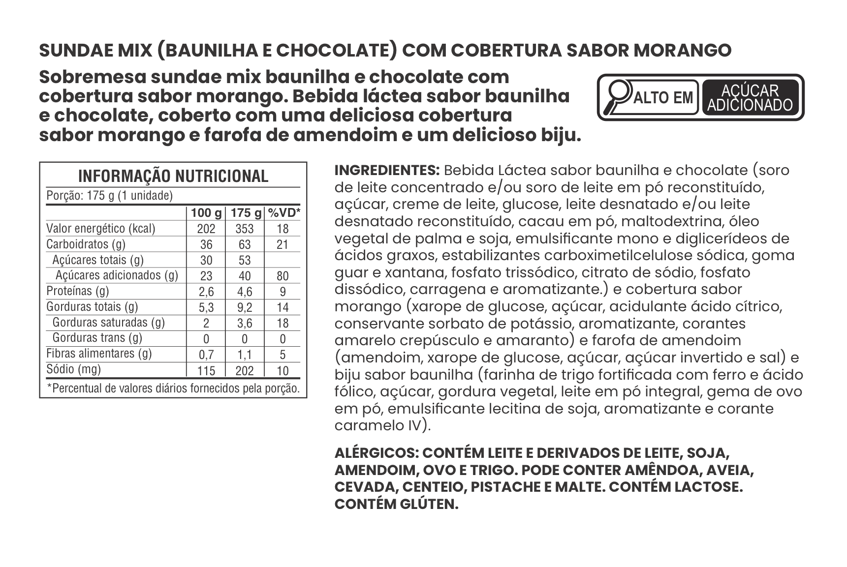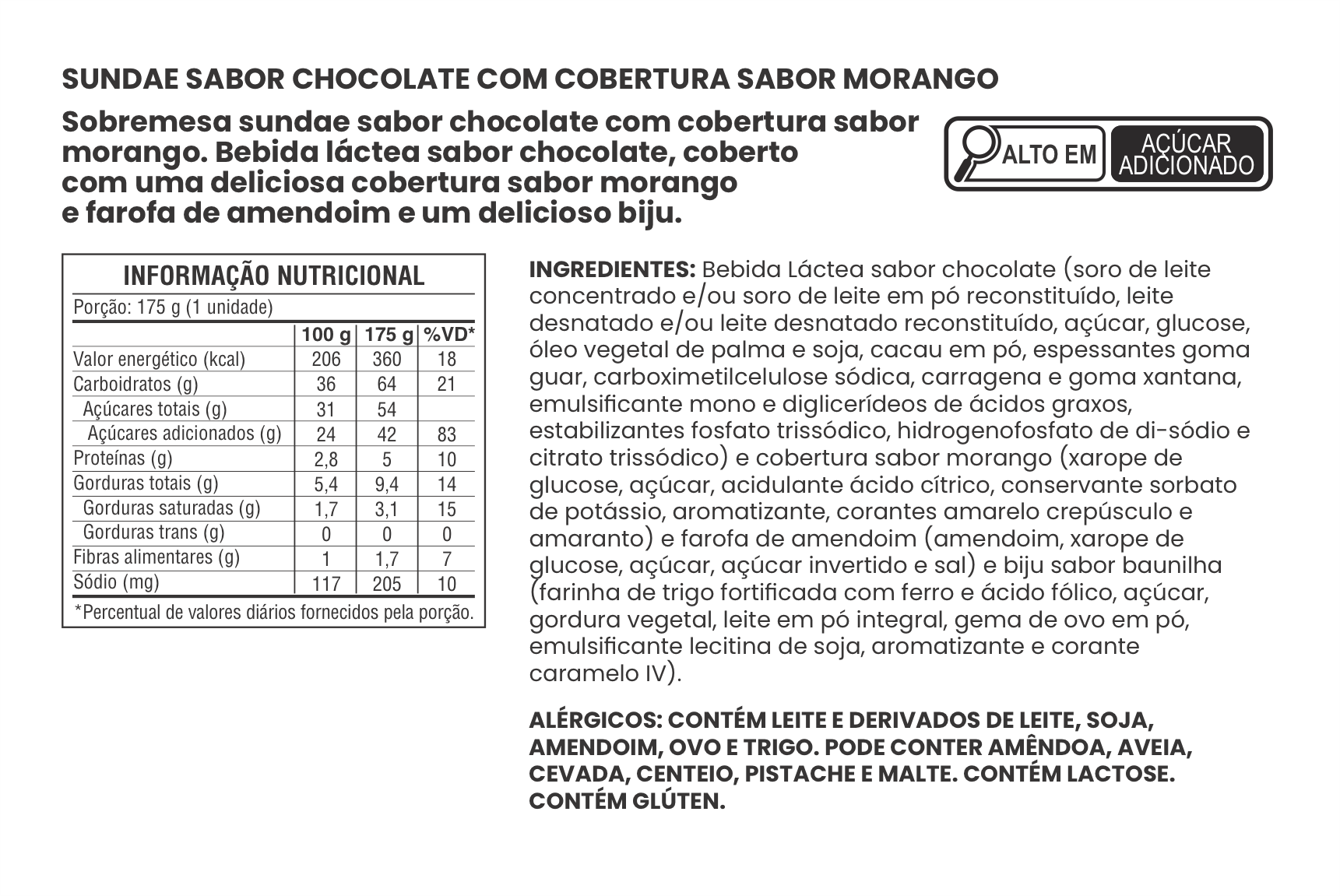SUNDAE SABOR CHOCOLATE COM COBERTURA SABOR MORANGO