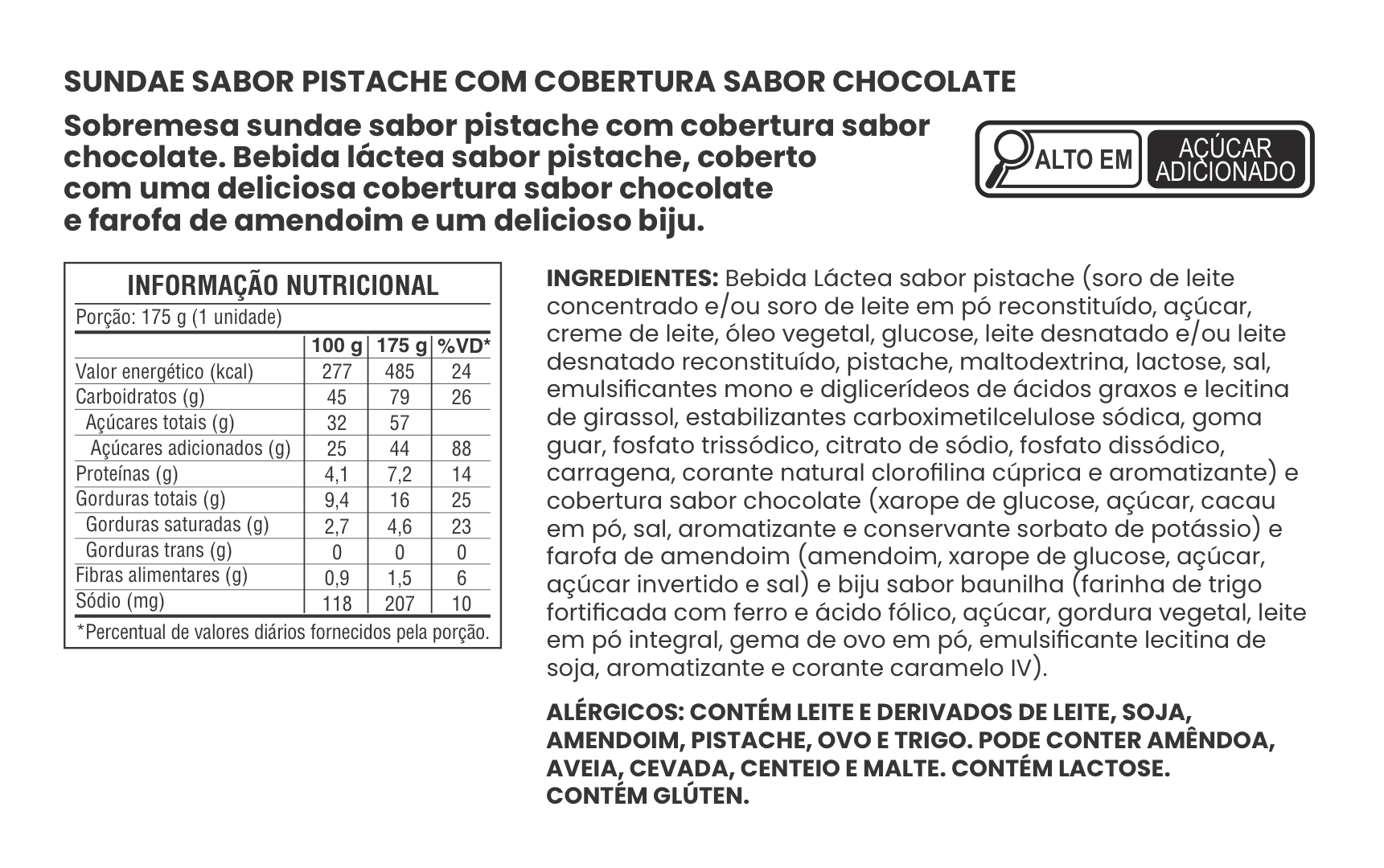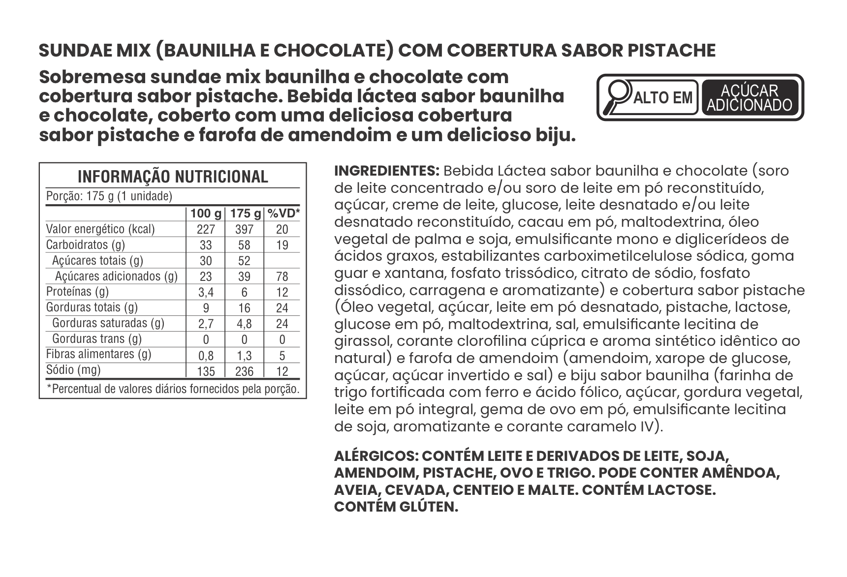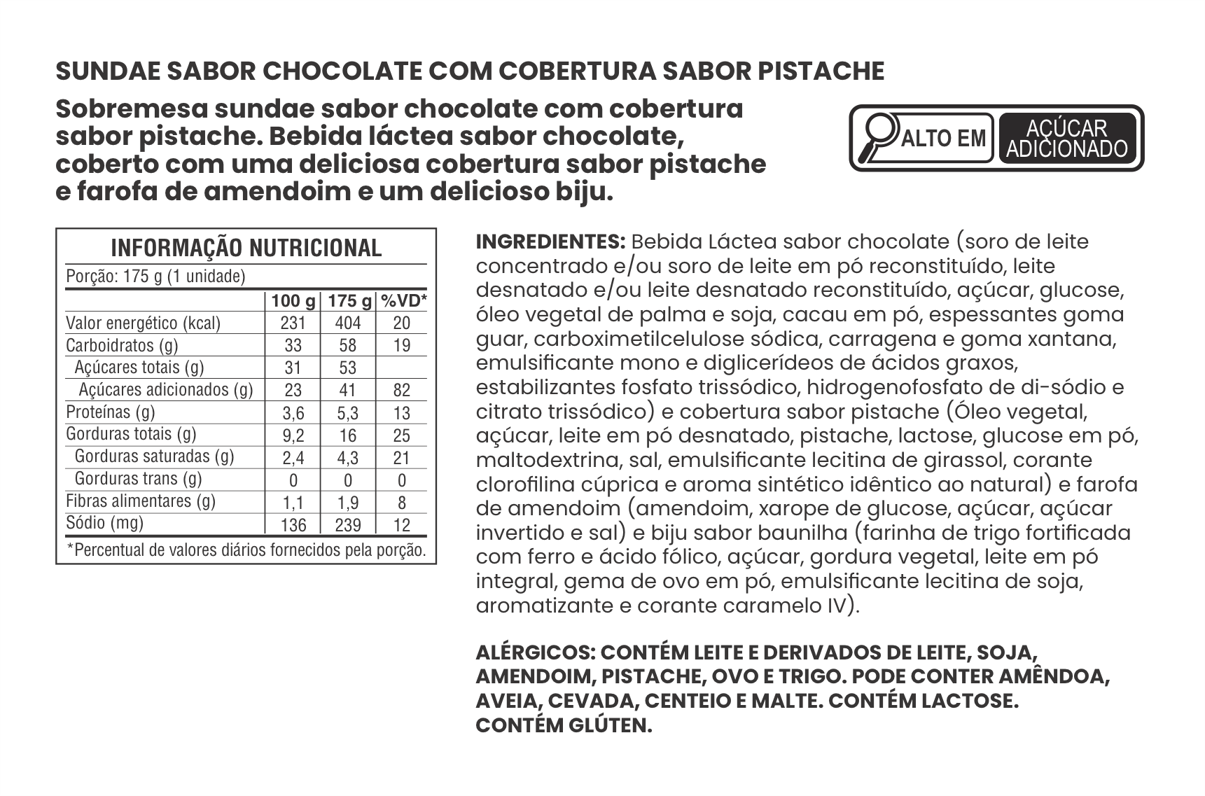 SUNDAE SABOR CHOCOLATE COM COBERTURA SABOR PISTACHE