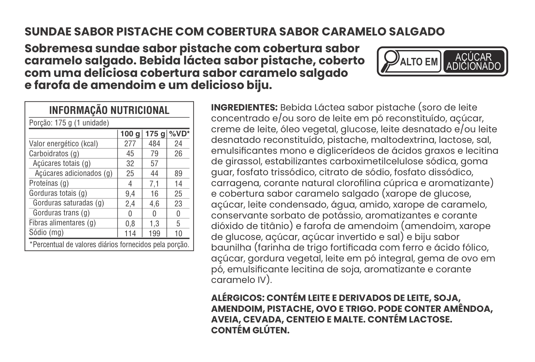 SUNDAE SABOR PISTACHE COM COBERTURA SABOR CARAMELO SALGADO