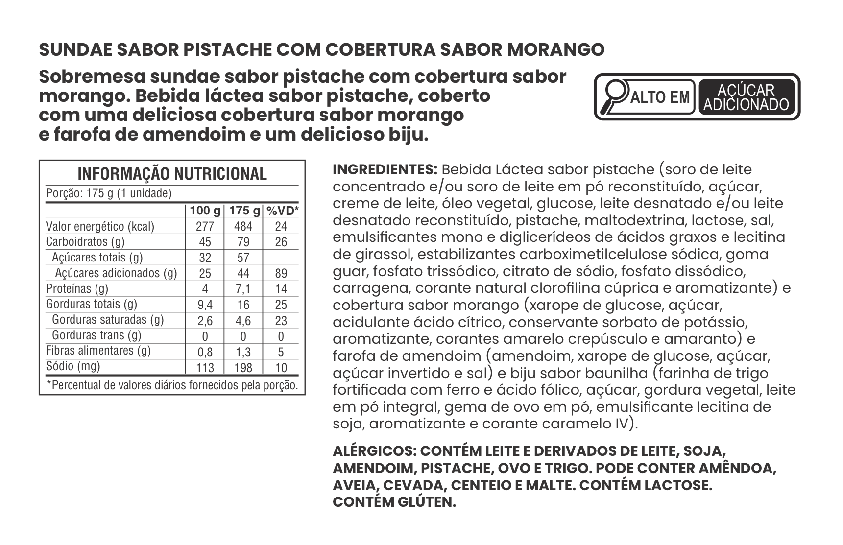 SUNDAE SABOR PISTACHE COM COBERTURA SABOR MORANGO